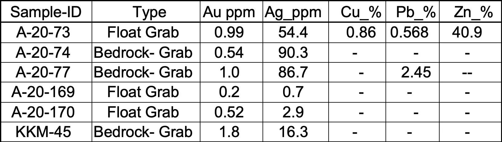 Previous sampling by Decade in 2020 shown on attached map, indicates that the sericite altered zone is highly anomalous in gold-silver values. A summary of these samples is as follows: