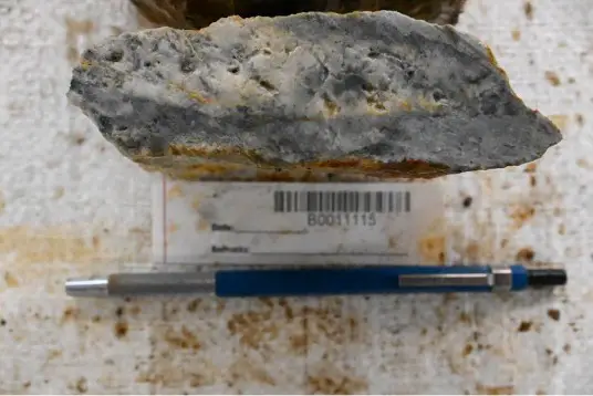 “The presence of an oxidized, porphyritic diorite intrusive, accompanied by an extensive quartz-sericite-pyrite alteration halo, was noted, exhibiting pervasive and texturally destructive characteristics with notable pyrite and galena occurrences.