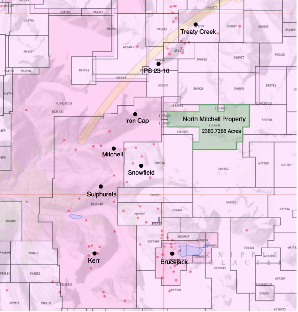 Stewart, BC – Decade Resources Ltd (“Decade”) reports that it entered into an option agreement to acquire the North Mitchell Property located 70 km north of Stewart BC. The North Mitchell Property is situated amongst several of the world’s most significant Cu-Au deposits within the “Golden Triangle” of northwestern British Columbia. The property consists of 963.45 ha (9.63 square km) surrounded by Cu-Au deposits on three sides.