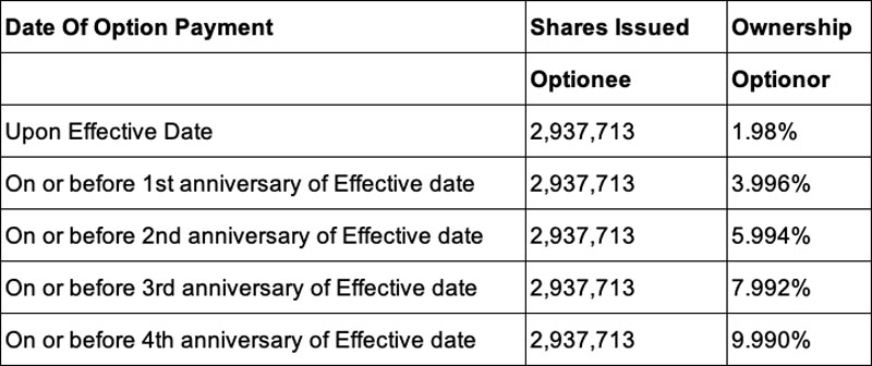 Decade has the right to earn a 70% undivided interest in the property by making the following payments to the Optionor (collectively, the “Option Payments”), as follows: