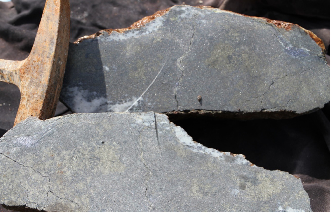 E. Kruchkowski, P. Geo. President of the Company states: “Continued exploration in 2025 indicates that the gold-silver-base metal rich rocks are composed of sulphides, quartz and muscovite. Thin section studies indicate that the boulders are quartz-muscovite with arsenopyrite, pyrite and sphalerite with lesser chalcopyrite and minor galena. In the examined samples no low or high temperature minerals were detected indicating the alteration/mineralization observed in these samples can be classified as mesothermal. Based on the analysis to date the discovered boulders are interpreted to be similar to an intrusive related gold deposit mineral type which are known to have enhanced bismuth and cobalt. These types of deposit are characterized by their association with felsic igneous rocks which are present on the property. The presence of these elements in these types of deposits indicates a significant mineralization process that has enhanced value and potential. The Company is excited about locating an area that appears to contain the source of these boulders”.